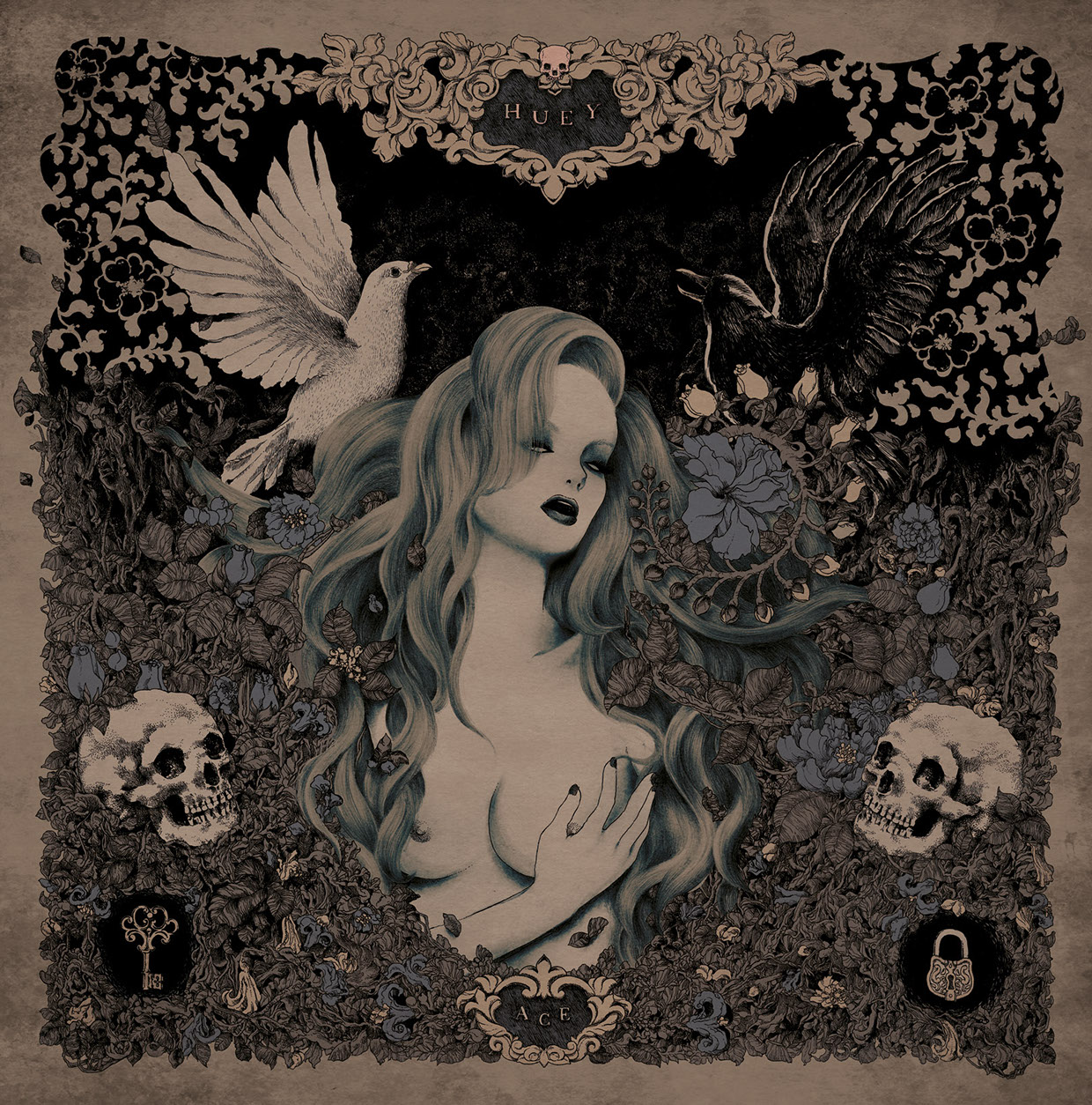 Mixed media. Album art for Huey, a brazilian instrumental rock band.